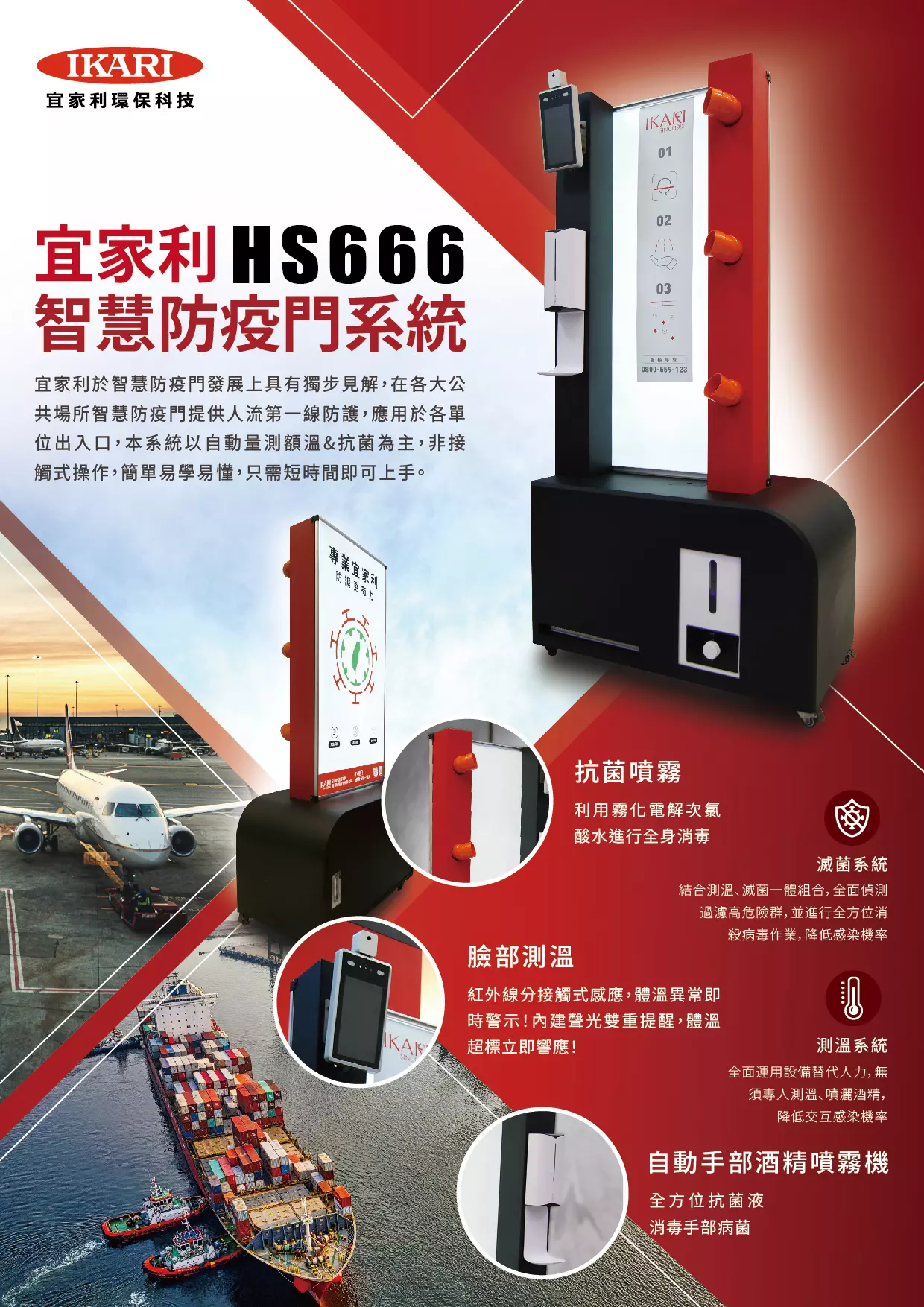 ✅ 宜家利環保科技針對疫情新開發的 智慧防疫門 HS666,是專為解決此痛點設計的防疫設備推薦首選。它將自動量測額溫與抗菌噴霧功能整合於一體,為您的場所建立起堅實的非接觸式防疫屏障。