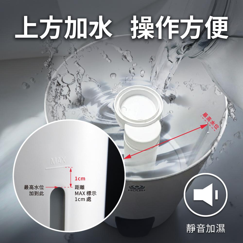 加入清水,即刻釋放細緻水霧,加濕潤肺、改善乾燥;