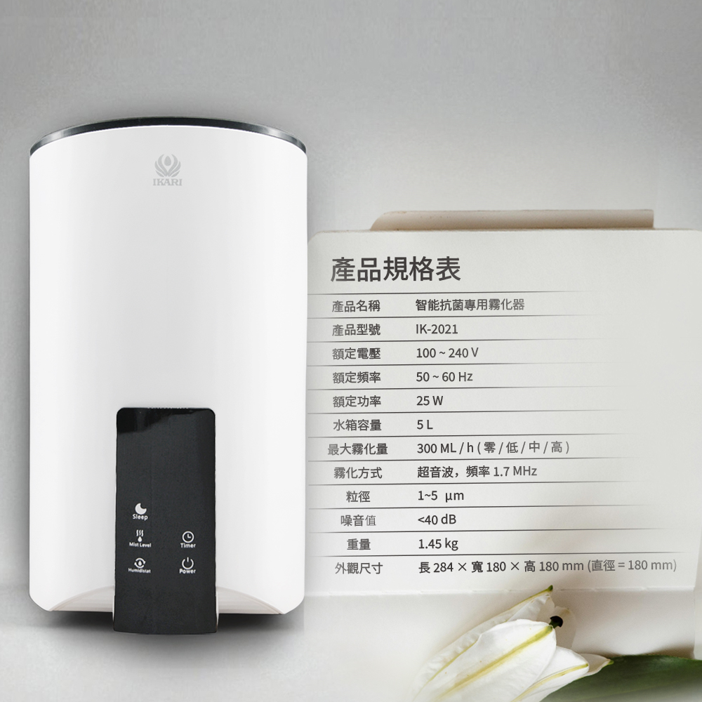 與市面小容量不同,IK2021擁有大容量水箱,可定時、可設定環境濕度,持續輸出不間斷。